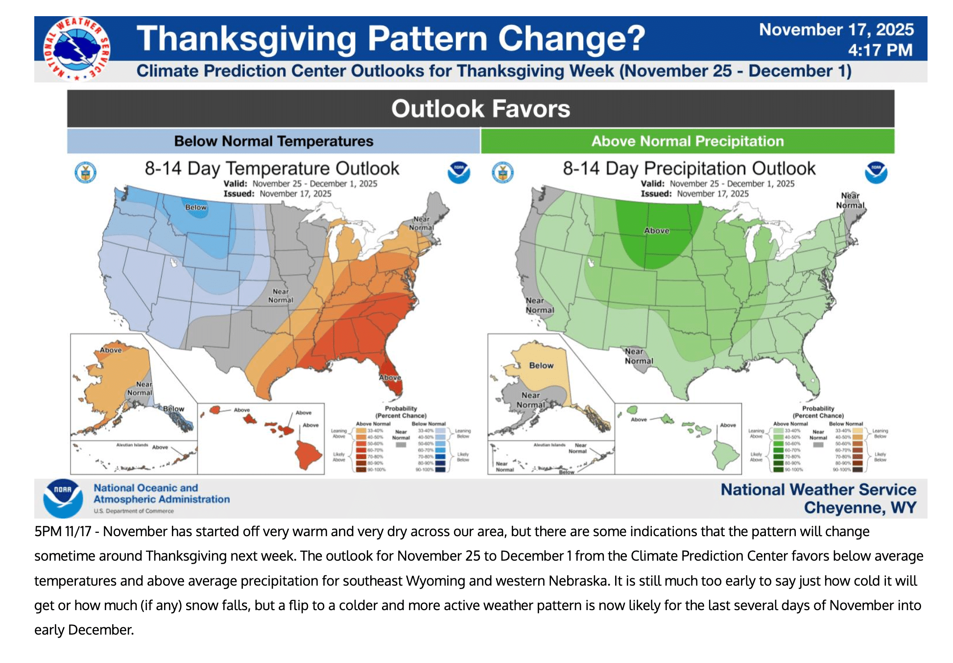 The Climate Prediction Center’s Thanksgiving week outlook backs up what apps like Carrot are hinting at: